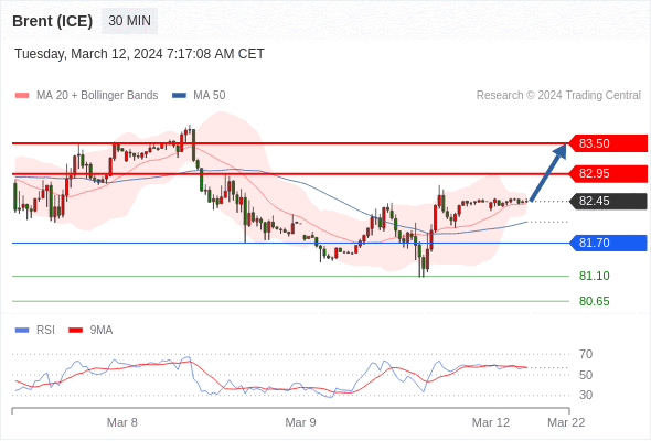 在 81.70 之上,看涨,目标价位为 82.95 ,然后为 83.50 。