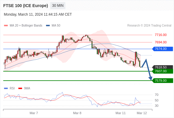 在 7674.00 之下,看跌,目标价位为 7607.00 ,然后为 7579.00 。