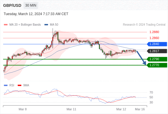 在 1.2840 之下,看跌,目标价位为 1.2790 ,然后为 1.2770 。