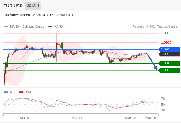 在 1.0945 之下,看跌,目标价位为 1.0915 ,然后为 1.0900 。