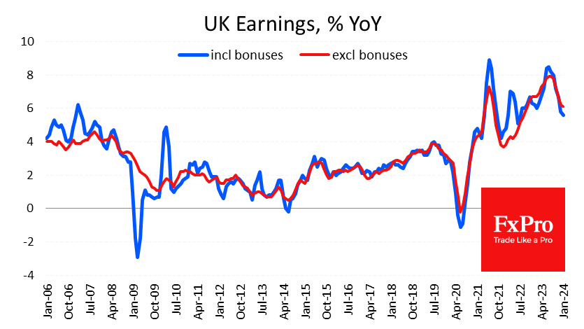 总的来说,劳动力市场指标允许英国央行在更早的时候放松货币政策,同时不会引发人们对经济即将到来或即将出现收缩的猜测。尽管利率很高,但充分就业支持着国内最终需求,占英国GDP的80%以上。