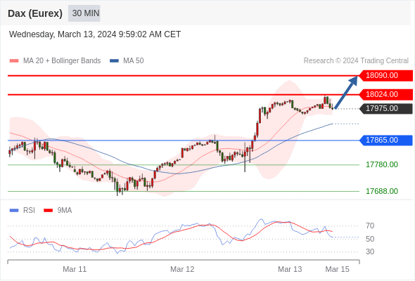 在 17865.00 之上,看涨,目标价位为 18024.00 ,然后为 18090.00 。