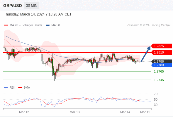 在 1.2780 之上,看涨,目标价位为 1.2810 ,然后为 1.2825 。