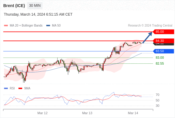 在 83.50 之上,看涨,目标价位为 84.30 ,然后为 85.00 。