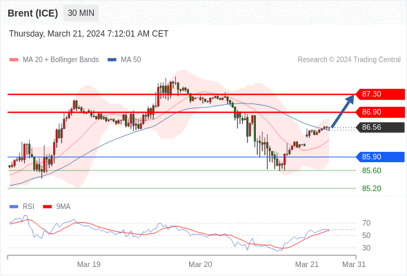 在 85.90 之上,看涨,目标价位为 86.90 ,然后为 87.30 。