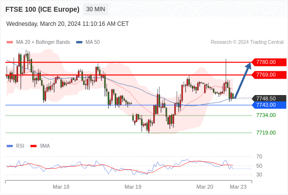 在 7743.00 之上,看涨,目标价位为 7769.00 ,然后为 7780.00 。