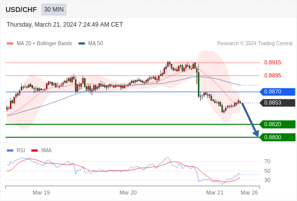 在 0.8870 之下,看跌,目标价位为 0.8820 ,然后为 0.8800 。