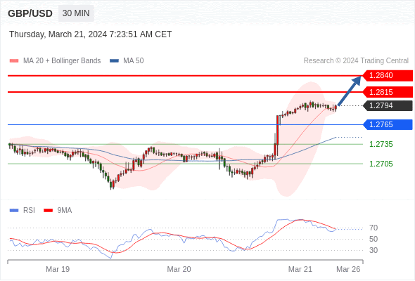 在 1.2765 之上,看涨,目标价位为 1.2815 ,然后为 1.2840 。
