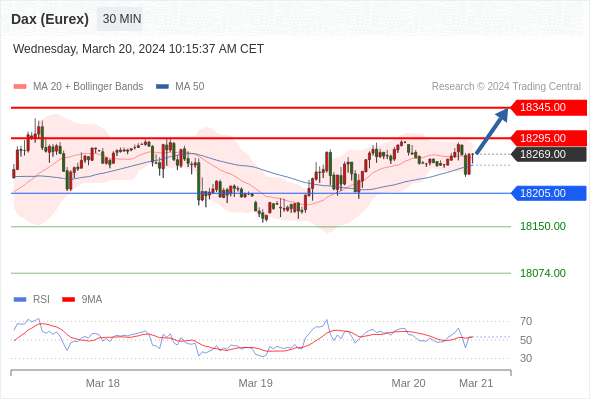在 18205.00 之上,看涨,目标价位为 18295.00 ,然后为 18345.00 。