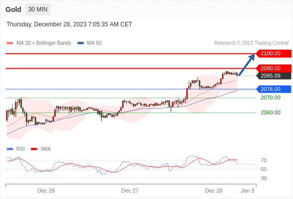 查看交易中心全球研究部门今日的市场观点。从受欢迎的交易产品中探索新的交易方法与机会。 欧元/美元英镑/美元黄金现货欧元/日元欧元/英镑美元/瑞郎德国DAX指数期货(urx)布伦特原油(IC)英国富时100指数期货 温馨提示:由于市场波动,价格可能已经越过关键点位,令策略失效。 黄金现货当日内:短期关键阻力位在2076.00