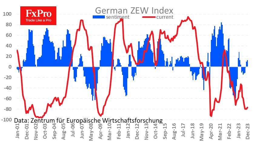 欧洲经济研究中心(ZW)最新的企业信心评估显示,该指数从9.8升至12.8,这对分析师而言是一个惊喜,他们原本预计该指数会小幅下降至9.6。目前的乐观等级是自今年3月以来的最高水平,但低于20.8的长期平均水平。 Fxro高级分析师AlxKutikvich指出:在对当前状况的评估中可以发现一些逆转的迹象。该指数继过去两个月的-79.9