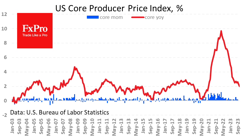 美国公布的生产者价格指数(I)弱于预期,加剧了人们对美联储可能很快转向宽松政策的猜测,导致美元承压。 Fxro高级分析师AlxKutikvich指出:11月,总体和核心生产者价格指数(I)无任何变化,年同比分别从1.2%降至0.9%和2.3%降至2.0%。这一数据低于预期,在较强的消费者通胀数据(两者通常密切相关)发布之后之后令人感到