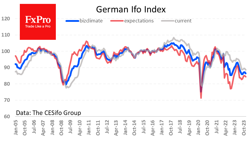 根据伊弗经济研究所(IfoIntitut)提供的信息,德国商业环境在12月恶化,而非预期的提升,这进一步证明制造业在挣扎中。商业景气指数从87.2降至86.4,而不是预期的上升至87.6。这种轻微的下降似乎标志着自入秋以来的改善趋势被打破。 Fxro高级分析师AlxKutikvich指出:大约一年前,我们看到商业环境指数(BuinCliatIndx)