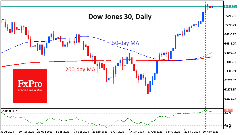 道琼斯指数已进入盘整模式,加入了标准普尔500指数和纳斯达克100指数的行列,这两个指数分别在近两周和三周前进入了盘整模式。这可能是在突破新高之前的盘整,但我们更有可能看到增长的消耗。 Fxro高级分析师AlxKutikvich指出:道琼斯指数目前距离2021年12月的创纪录收盘价仅0.8%,距离历史高点仅2%,在过去五周的反