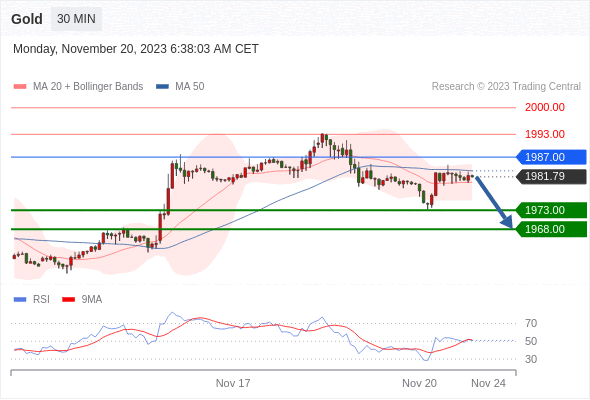 查看交易中心全球研究部门今日的市场观点。从受欢迎的交易产品中探索新的交易方法与机会。 欧元/美元英镑/美元黄金现货欧元/日元欧元/英镑美元/瑞郎德国DAX指数期货(urx)布伦特原油(IC)英国富时100指数期货 温馨提示:由于市场波动,价格可能已经越过关键点位,令策略失效。 黄金现货当日内:短期关键阻力位在1987.00