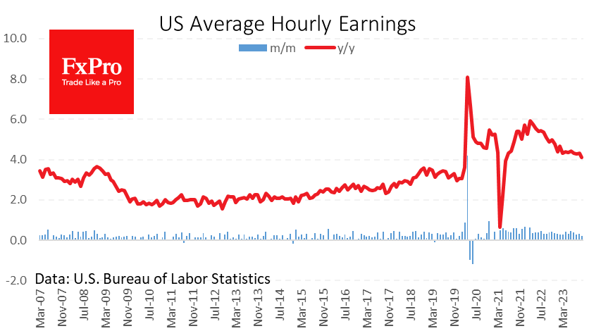 美国最后公布的数据如此疲弱,以至于市场可以庆祝一番。美国劳动力市场10月份增加了15万个工作岗位,此前为29.7万个(修正前为33.6万个),预期为18万个。尽管经济活动人口的比例从62.8%下降到62.7%,但失业率出人意料地从3.8%上升到3.9%。工资增长从4.3%放缓至4.1%,为两年以来的最低水平。 Fxro高级分析师AlxKutikvich