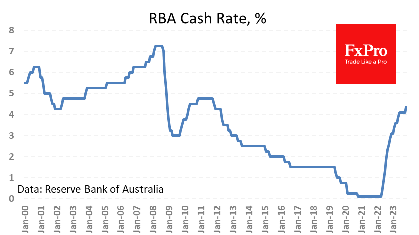 由于交易者似乎对货币当局的行动不以为然。自周二开市以来,澳元已下跌逾1%。 Fxro高级分析师AlxKutikvich指出:在澳大利亚央行决定将关键利率提高25个基点至4.35%,创下12年新高后,澳元兑美元遭遇抛售。该决定与预期一致,因此触及0.6500的水平引发了大规模抛售,致使该货币对短暂回落至0.64以下。 澳大利亚央行