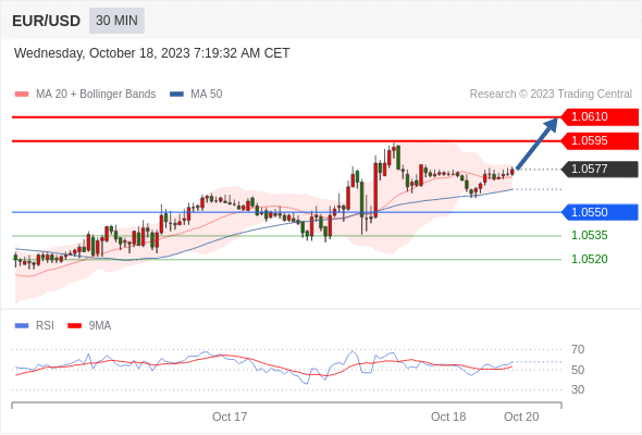 查看交易中心全球研究部门今日的市场观点。从受欢迎的交易产品中探索新的交易方法与机会。 欧元/美元黄金英镑/美元欧元/日元欧元/英镑美元/瑞郎德国DAX指数期货(urx)布伦特原油(IC)英国富时100指数期货 温馨提示:由于市场波动,价格可能已经越过关键点位,令策略失效。 欧元/美元当日内:在1.0550之上,看涨。 转折