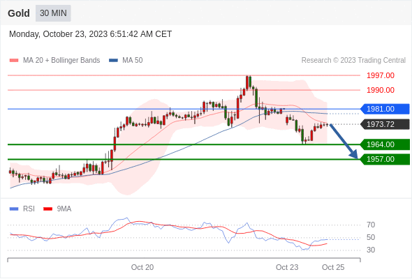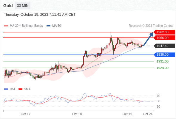 查看交易中心全球研究部门今日的市场观点。从受欢迎的交易产品中探索新的交易方法与机会。 欧元/美元黄金英镑/美元欧元/日元欧元/英镑美元/瑞郎德国DAX指数期货(urx)布伦特原油(IC)英国富时100指数期货 温馨提示:由于市场波动,价格可能已经越过关键点位,令策略失效。 黄金现货当日内:目标位为1957.00。 转折点: