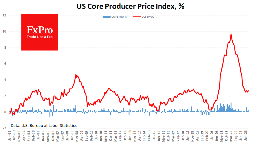 美国生产者价格指数(I)的上涨势头强于预期,新一轮价格加速重新使得投资者的担忧。 整体I环比上涨0.5%,而不是预期的0.3%。去年同期,该指数同比上涨2.2%,而不是预期的1.6%。这种对年增长率的不同估计是由于对前几个月的数据进行了向上修正。简单地说,生产者价格通胀高于预期。 除去波动较大的食品和能源后,该指数