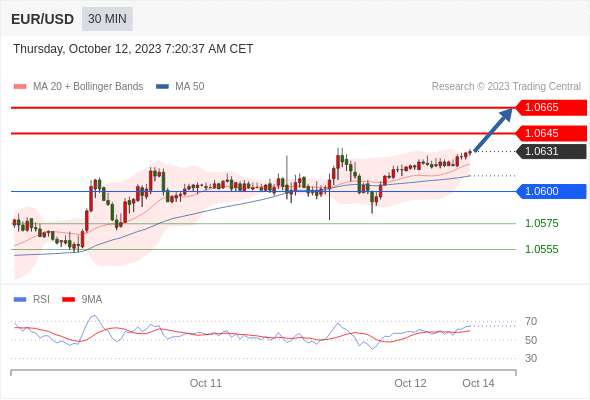 查看交易中心全球研究部门今日的市场观点。从受欢迎的交易产品中探索新的交易方法与机会。 欧元/美元黄金英镑/美元欧元/日元欧元/英镑美元/瑞郎德国DAX指数期货(urx)布伦特原油(IC)英国富时100指数期货 温馨提示:由于市场波动,价格可能已经越过关键点位,令策略失效。 欧元/美元当日内:进一步上涨。 转折点: 1.06