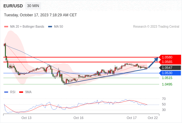 查看交易中心全球研究部门今日的市场观点。从受欢迎的交易产品中探索新的交易方法与机会。 欧元/美元黄金英镑/美元欧元/日元欧元/英镑美元/瑞郎德国DAX指数期货(urx)布伦特原油(IC)英国富时100指数期货 温馨提示:由于市场波动,价格可能已经越过关键点位,令策略失效。 欧元/美元当日内:看涨。 转折点: 1.0530 交