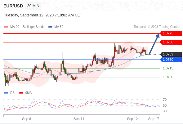 查看交易中心全球研究部门今日的市场观点。从受欢迎的交易产品中探索新的交易方法与机会。 欧元/美元黄金英镑/美元欧元/日元欧元/英镑美元/瑞郎德国DAX指数期货(urx)布伦特原油(IC)英国富时100指数期货 温馨提示:由于市场波动,价格可能已经越过关键点位,令策略失效。 欧元/美元当日内:在1.0730之上,看涨。 转折