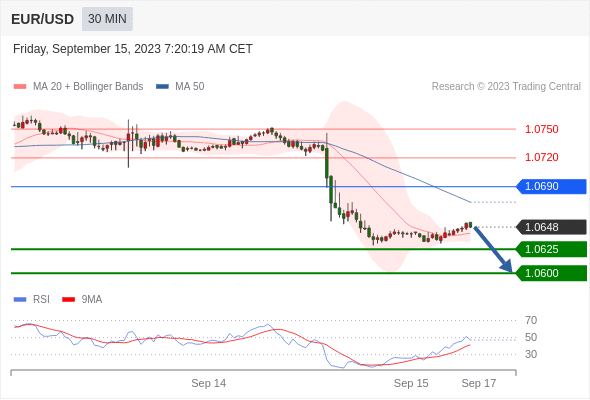 查看交易中心全球研究部门今日的市场观点。从受欢迎的交易产品中探索新的交易方法与机会。 欧元/美元黄金英镑/美元欧元/日元欧元/英镑美元/瑞郎德国DAX指数期货(urx)布伦特原油(IC)英国富时100指数期货 温馨提示:由于市场波动,价格可能已经越过关键点位,令策略失效。 欧元/美元当日内:存在压力。 转折点: 1.0675