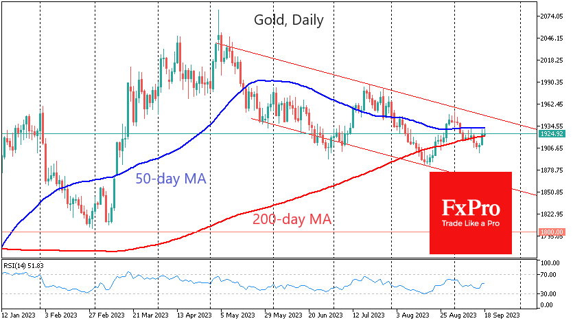 上周五,金价上涨了近1%,此前一天金价曾跌至1900美元以下。第二个月的价格测试了长期和中期趋势,让美联储做出支持多头还是空头的决定性论点。到目前为止,周五的上涨看起来像是空头的陷阱。 Fxro高级分析师AlxKutikvich指出:金价上周最低收于200日移动均线上方。在过去的两个月里,这是多头第二次试图证明低于这条线