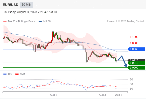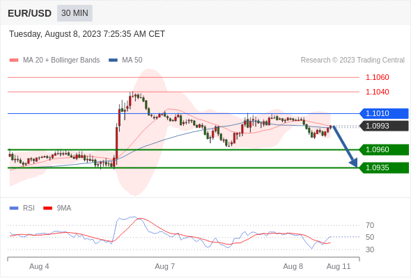 查看交易中心全球研究部门今日的市场观点。从受欢迎的交易产品中探索新的交易方法与机会。 欧元/美元黄金英镑/美元欧元/日元欧元/英镑美元/瑞郎德国DAX指数期货(urx)布伦特原油(IC)英国富时100指数期货 温馨提示:由于市场波动,价格可能已经越过关键点位,令策略失效。 欧元/美元当日内:下跌趋势。 转折点: 1.0960