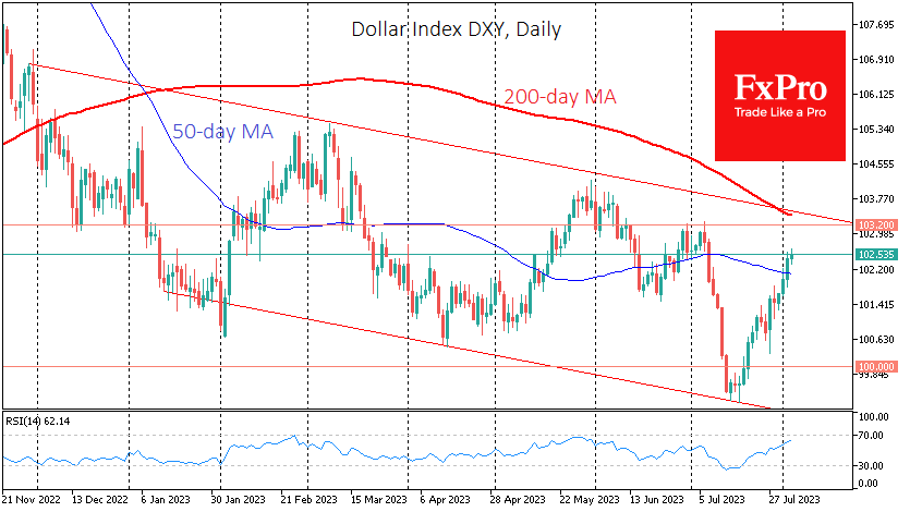 得益于近几日金融市场的谨慎,美元延续了自上月中旬以来的涨势。 尽管目前的反弹尚未使美元指数回到7月初大规模抛售之前的水平,但最近的美元升值可能成为一种长期趋势。 Fxro高级分析师AlxKutikvich指出:美元最近受到强劲宏观数据的支撑,包括昨日AD公布的私营部门就业人数增加32.4万。商业石油库存创下最大单周