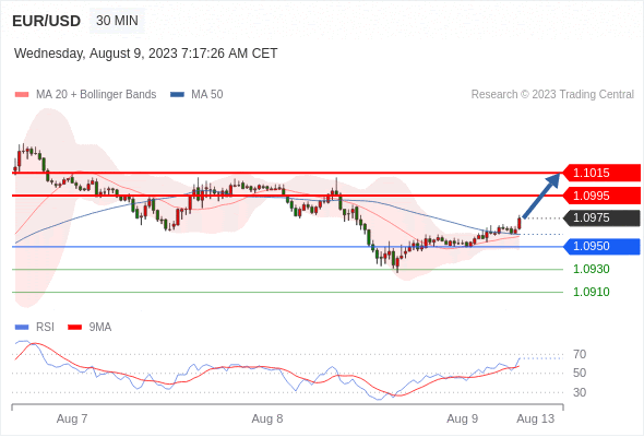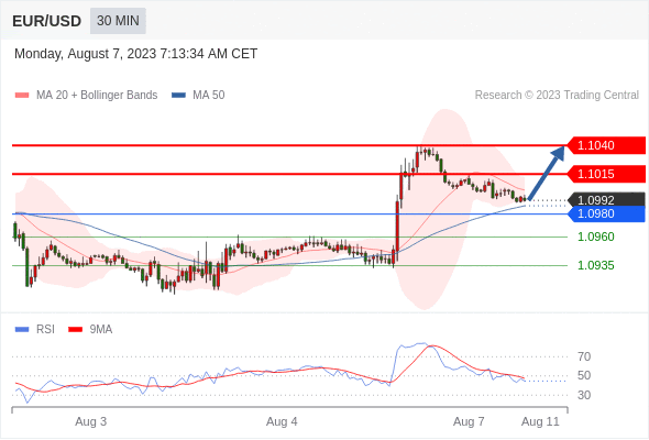 查看交易中心全球研究部门今日的市场观点。从受欢迎的交易产品中探索新的交易方法与机会。 欧元/美元黄金英镑/美元欧元/日元欧元/英镑美元/瑞郎德国DAX指数期货(urx)布伦特原油(IC)英国富时100指数期货 温馨提示:由于市场波动,价格可能已经越过关键点位,令策略失效。 欧元/美元当日内:谨慎操作。 转折点: 1.0980