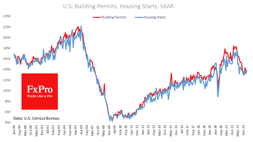 美国房地产市场继续受到高利率的冲击。继前一个月下降3.0%之后,4月份发放的建筑许可证数量下降了1.5%。过去两个月的下跌几乎抵消了2月份上涨的一半,增加了房地产市场尚未达到本轮周期最低点的可能性。 Fxro高级分析师AlxKutikvich指出:尽管如此,自今年年初以来,美国新建筑的下降速度已经放缓。然而,在整个2022