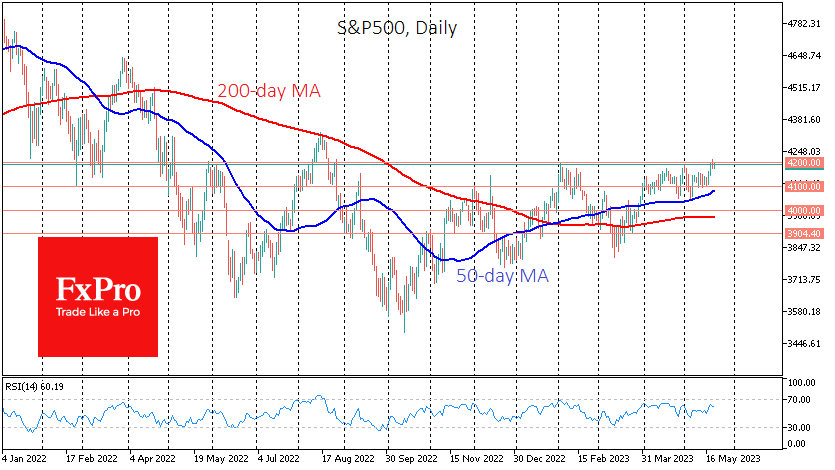 美国市场上周大幅上涨,将标准普尔500指数(a500)推至4200点,这是一个关键转折点。在指数稳步移动到下一个水平之前,值得为上行止损或调整做准备。 Fxro高级分析师AlxKutikvich指出:标准普尔500指数在过去两年中多次停在4200水平附近。从2021年4月到6月,在上升的路上有一个暂停然后,它在2022年3月和5月成为重要支持