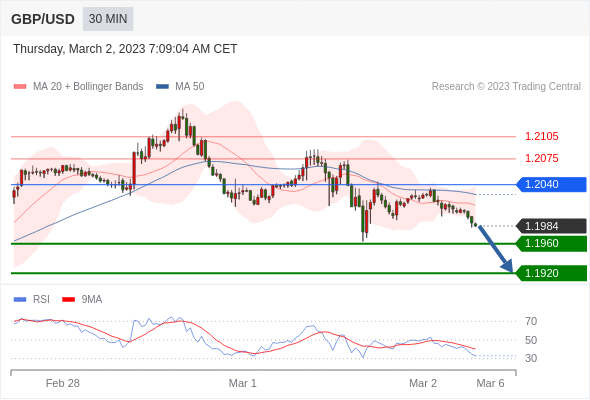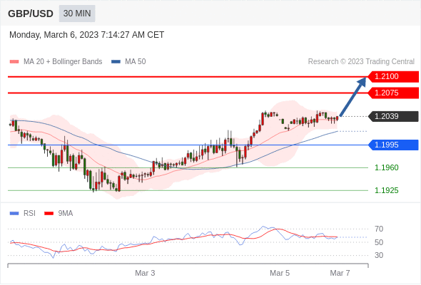 查看交易中心全球研究部门今日的市场观点。从受欢迎的交易产品中探索新的交易方法与机会。 欧元/美元黄金英镑/美元欧元/日元欧元/英镑美元/瑞郎德国DAX指数期货(urx)布伦特原油(IC)英国富时100指数期货 温馨提示:由于市场波动,价格可能已经越过关键点位,令策略失效。 英镑/美元当日内:上升趋势。 转折点: 1.1995