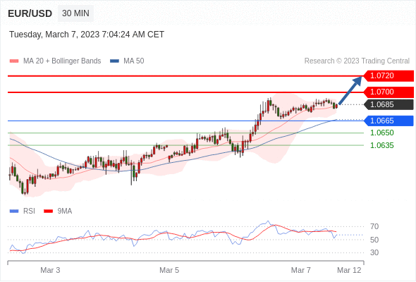 查看交易中心全球研究部门今日的市场观点。从受欢迎的交易产品中探索新的交易方法与机会。 欧元/美元黄金英镑/美元欧元/日元欧元/英镑美元/瑞郎德国DAX指数期货(urx)布伦特原油(IC)英国富时100指数期货 温馨提示:由于市场波动,价格可能已经越过关键点位,令策略失效。 欧元/美元当日内:看涨。 转折点: 1.0665 交