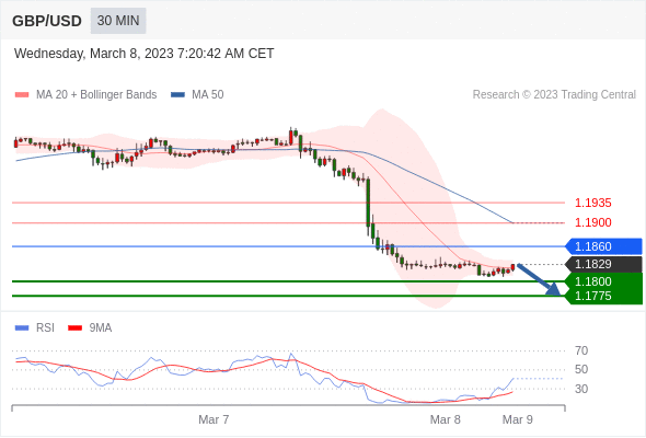 查看交易中心全球研究部门今日的市场观点。从受欢迎的交易产品中探索新的交易方法与机会。 欧元/美元黄金英镑/美元欧元/日元欧元/英镑美元/瑞郎德国DAX指数期货(urx)布伦特原油(IC)英国富时100指数期货 温馨提示:由于市场波动,价格可能已经越过关键点位,令策略失效。 英镑/美元当日内:存在压力。 转折点: 1.1860