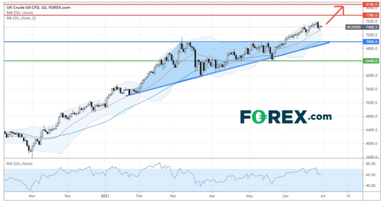 技术格局极为看涨,英国原油CFD可望向上行目标7,780点和8,100点进发。看涨的主要支持 (止损) 位已上移至7,000点。