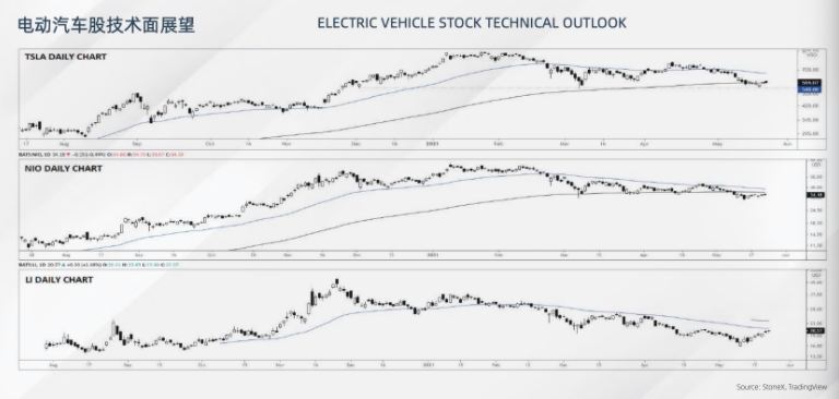 我们用EV/EBITDA(企业价值倍数)这指标来观测就不难发现,投资者显然对电动汽车制造商充满热情。嘉盛集团全球研究主管Matt Weller在今年6月初的北京媒体会上就分享了对相关股价的看法——特斯拉汽车(TSLA)的EV/Revenue为15.3 ,第一季度销量为184,800辆;蔚来汽车(NIO) 的EV/Revenue为14.8 ,第一季度销量为20,060辆;理想汽车(LI) 的EV / Revenue 为9.4,第一季度销量:12,579辆。当前股票估值的定价是基于该市场未来多年指数级增长和市场份额提升。