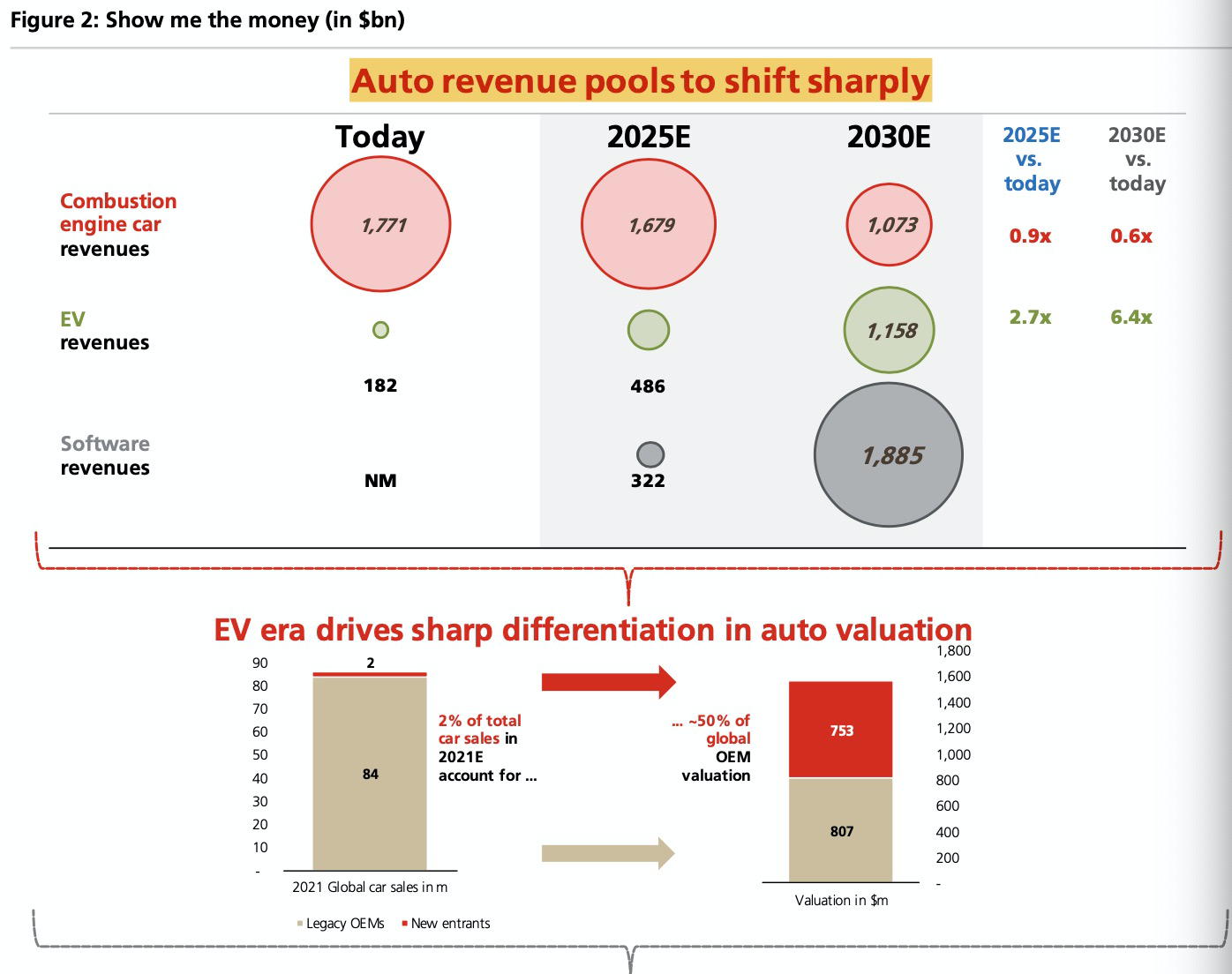 对于那些能够挑战特斯拉领先优势的公司来说,软件将是下一个战场,也是一个重要的收入机会。瑞银也表示,如果特斯拉是新移动世界的苹果(Apple),那么大众和现代(Hyundai)等领先的传统OEM可能会像三星(Samsung)一样,具有巨大估值重估的潜力。