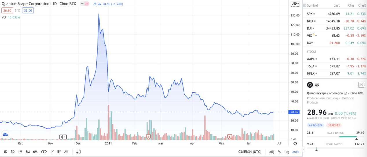 固态电池有望成为未来技术颠覆者,美国固态电池开发商QuantumScape(QS.US)一度备受关注。