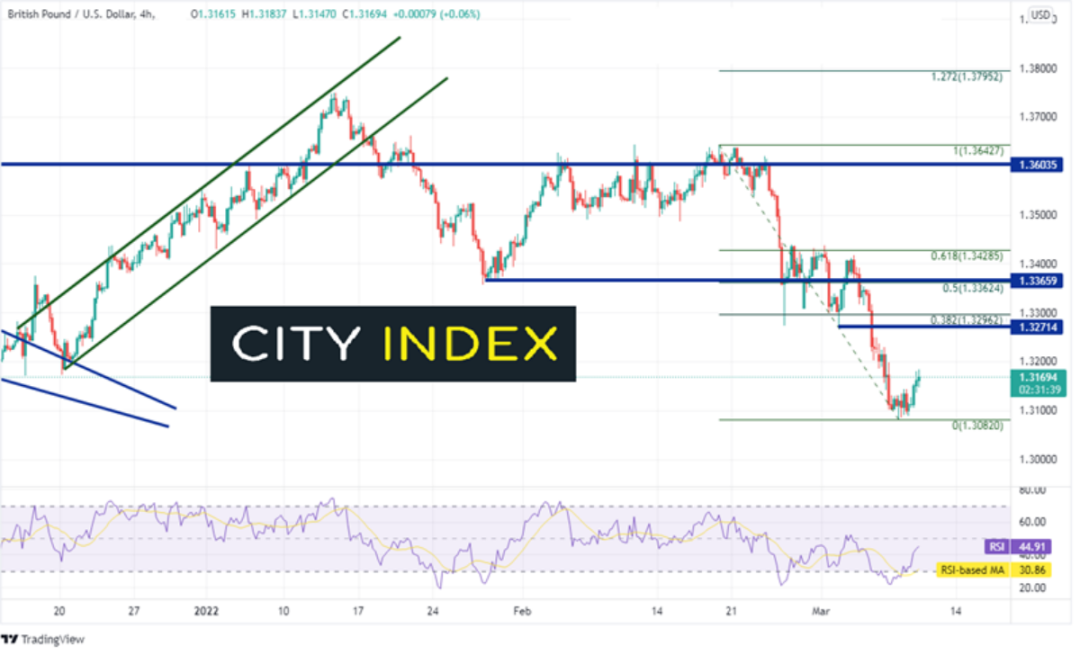 俄罗斯与乌克兰之间可以达成停火协议的期待与希冀推低美元指数、推高英镑/美元。但如果出现负面消息,可能导致这两种交易产品的走势逆转。请注意,FOMC与英国央行将在下周召开货币政策会议。所以,英镑/美元下周的焦点可能从俄乌冲突切换到央行会议的结果。