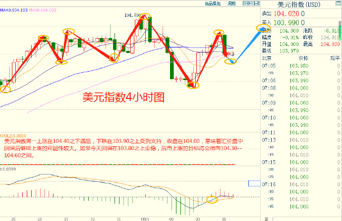 从技术上来看,美指周二上涨在104.40之下遇阻,下跌在103.80之上受到支持,意味着美元短线下跌后有可能保持上涨的走势。如果美指今天下跌在103.80之上受到支持,后市上涨的目标将会指向104.40--104.70之间。今天美指短线阻力在104.35--104.40,短线重要阻力在104.65--104.70。今天美指短线支持在103.80--103.85,短线重