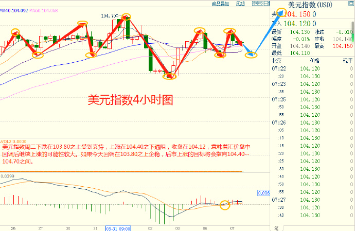 从技术上来看,美指周三上涨在104.70之下遇阻,下跌在104.00之上受到支持,意味着美元短线下跌后有可能保持上涨的走势。如果美指今天下跌在103.95之上受到支持,后市上涨的目标将会指向104.70--105.05之间。今天美指短线阻力在104.65--104.70,短线重要阻力在105.00--105.05。今天美指短线支持在103.95--104.00,短线重