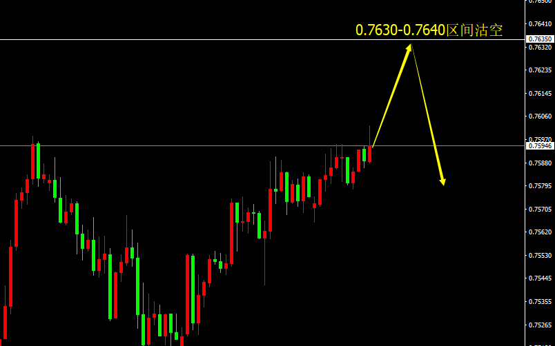 0.7630-0.7640区间沽空,止损20点,目标0.7610、0.7590、0.7570。