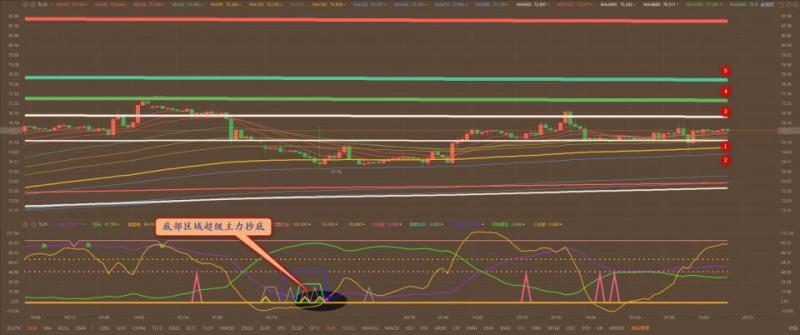 通过对原油小时图解析得知,昨日行情先涨后跌再上涨,晚间在下方2号均线的支撑位附近止跌反弹,我们从下方的幅图可以清楚地看到在下方73.80一线出现超级主力抄底动作震荡了一天就开始向上运行同时也是交割期多头主力完成布局动作昨日继续震荡调整一下对后期的进一步拉升突破起到支撑作用,短期上方我们重点关注345号均线的压力即可,下方12号均线依然是支撑,在操作是我们继续高空低多思路,重点逢低做多,具体建议如下:
