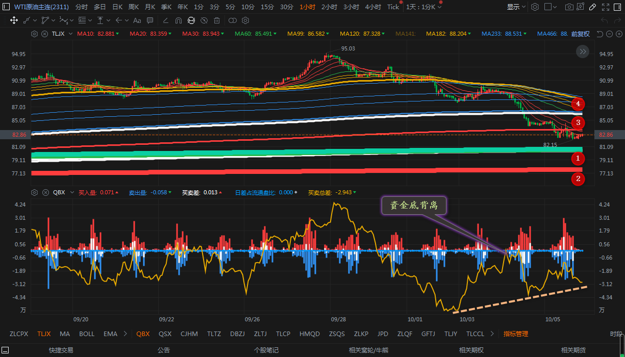 通过对原油小时图解析得知,昨日行情反弹无力继续延续下跌走势,行情有进一步下探的可能性,我们从下方的附图可以清楚的看到虽然资金在弱势区运行但是已经形成严重的底背离迹象,毕竟短期还没有出现止跌动作,下方我们重点关注12号均线的支撑,上方我们重点关注34号的均线压力,短期在操作上我们继续重点逢高做空,具体建议如下:
