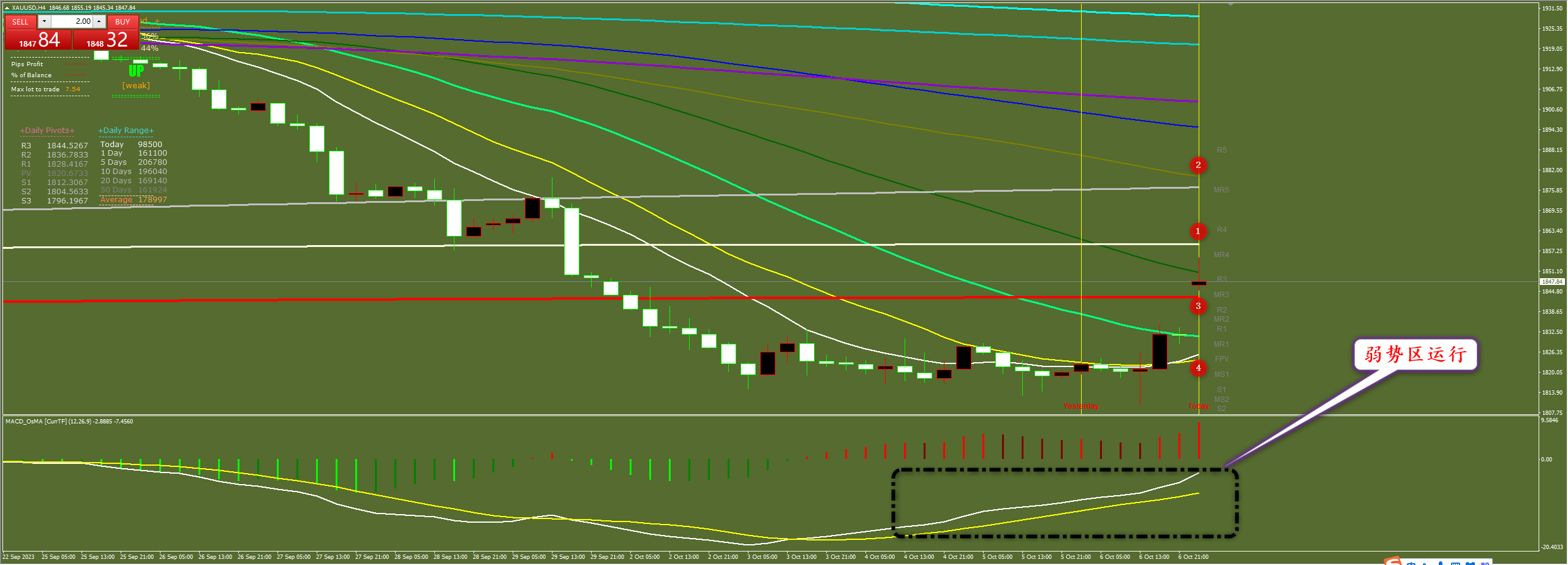 通过对黄金4小时图解析得知,上一个交易日先跌后涨,今日受外围数据影响跳空高开站上3号均线,我们从下方的幅图可以清楚地看到多头红色能量柱一直是处于增仓的状态但是短期依然是在零轴下方运行还构不成反转上方依然是受到均线系统的压制,短期继续震荡调整的可能性比较大一点但是不排除进一步的反弹,短期上方我们重点关注12号均线的压制,下方我们重点关注34号均线的支撑在操作上我们继续高空低多思路,具体建议如下: