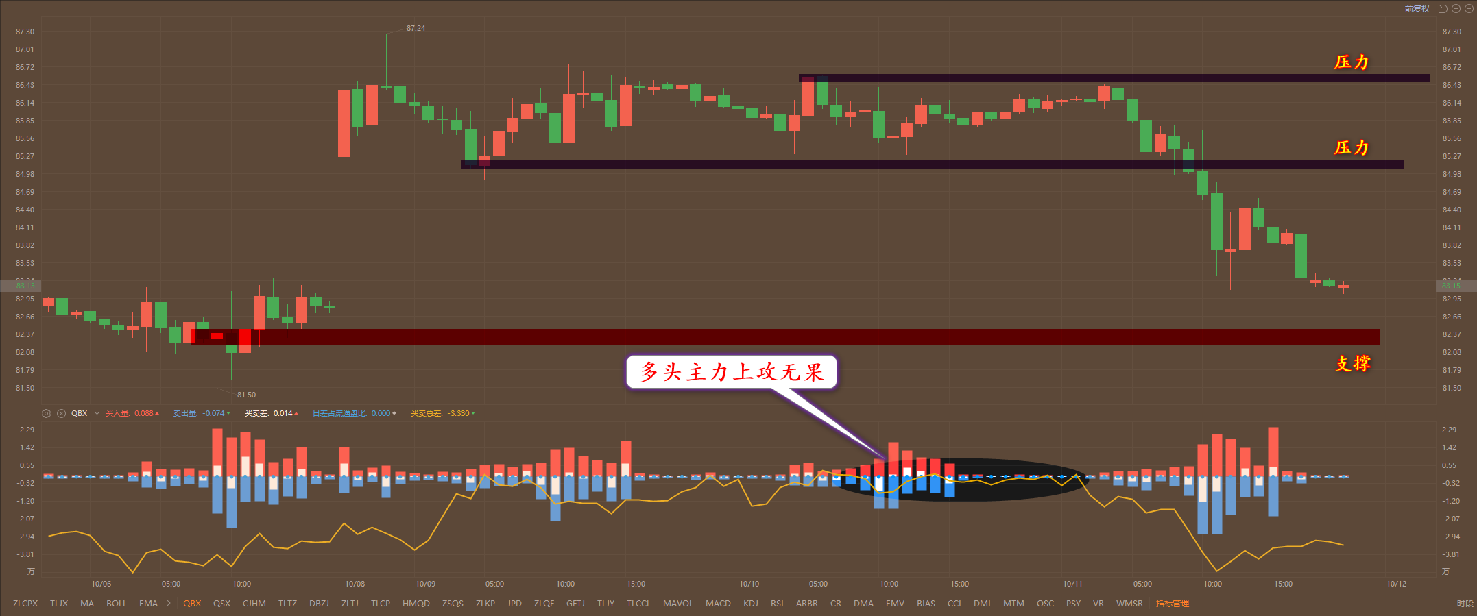 原油82.30和80.30分别做多,止损各70点,止盈各300点;