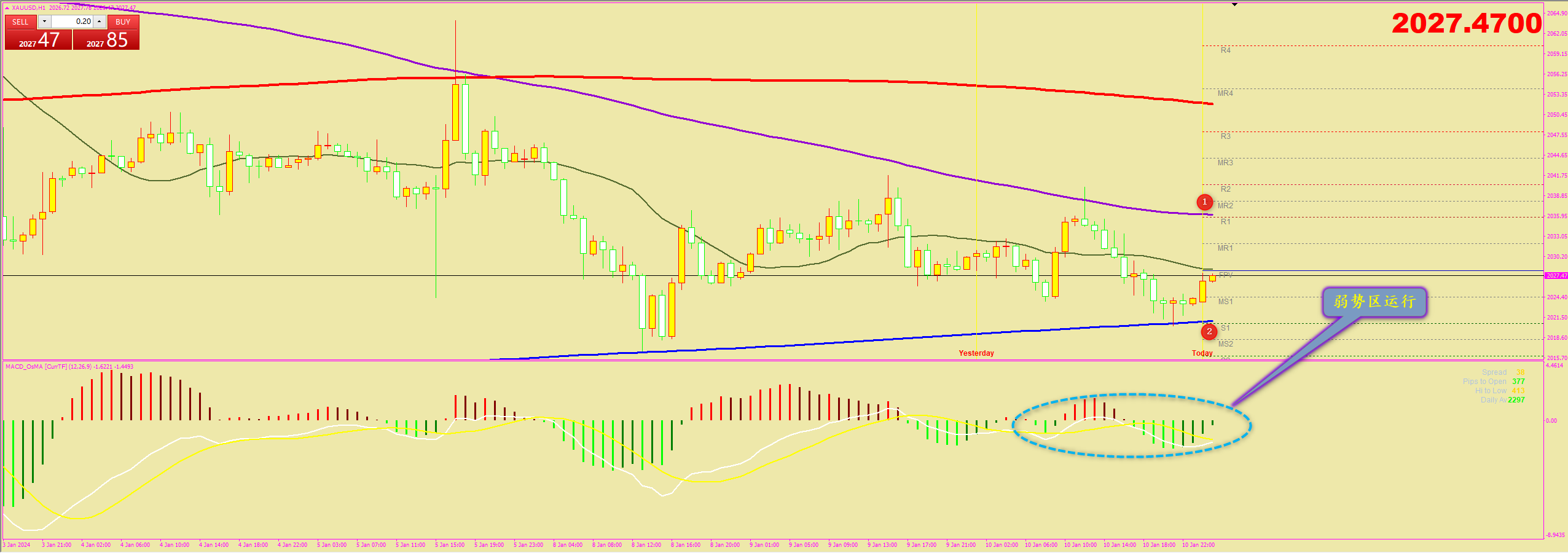 通过对黄金小时图解析得知,昨日行情先涨后跌如期再盘中形成窄幅震荡调整走势,行情依然在上方的1号均线压力位冲高回落,晚间在下方2号支撑位再次止跌反弹,我们从下方的附图MACD 可以清楚的看到近期几个交易日一直是在零轴下方运行说明短期整体一直属于弱势盘整的状态不过短期在下发的均线位得到了有效支撑形成逐步抬高动作状态,说明在底部区域有资金进仓迹象,短期将会继续在底部区域继续震荡调整运行,我们重点继续关注上下均线的支撑和压力即可,在操作上我们继续高空低多思路,具体建议如下: